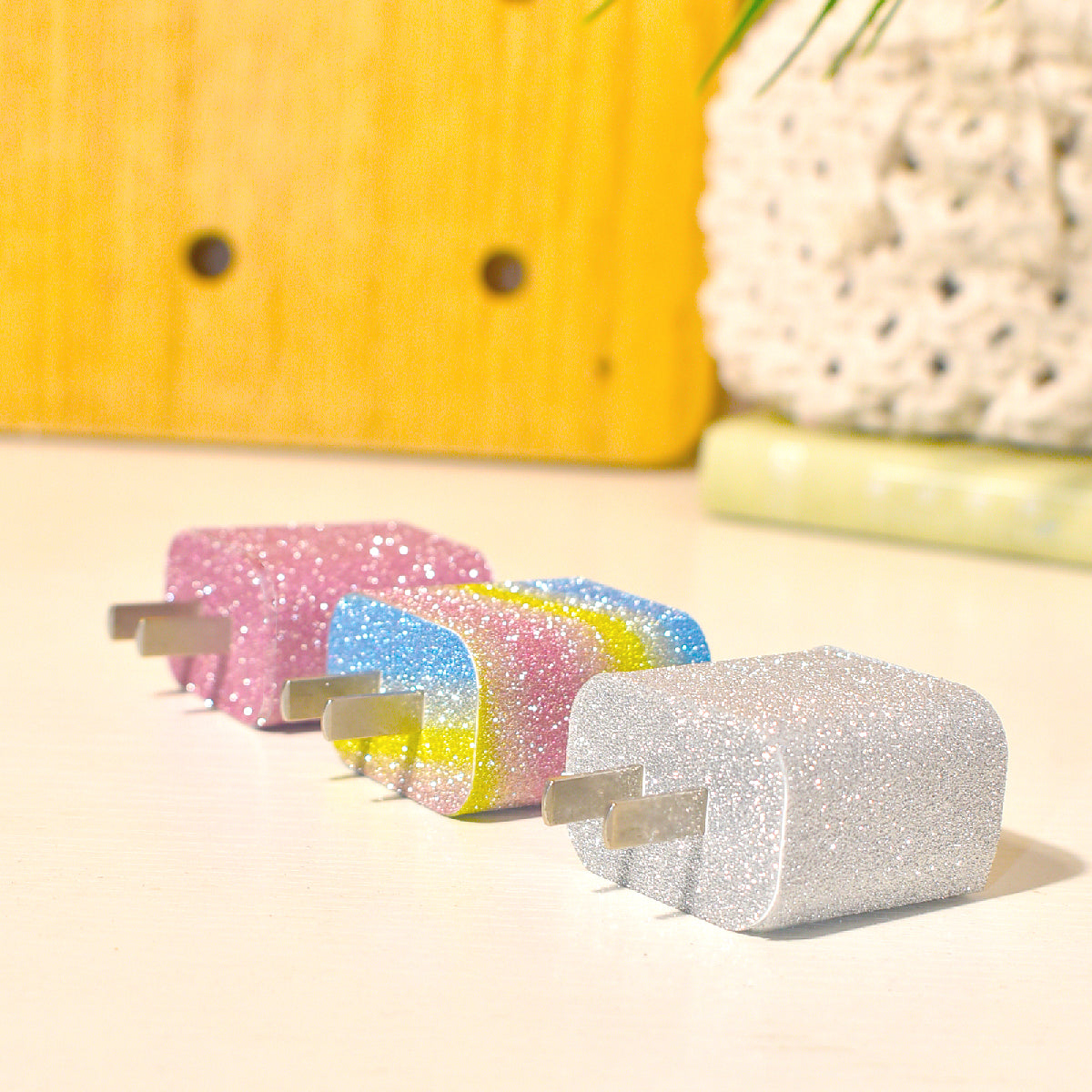 The charger stickers feature a glittery surface that catches the light beautifully, creating a dazzling shine under sunlight.