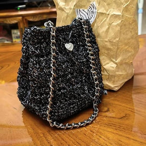 Obsessed! I can’t believe I actually made this myself. The yarn has the perfect subtle shimmer and the silver hardware feels so premium. It looks like a high-end boutique find. Super fun project and the results are 10/10! 🖤✨