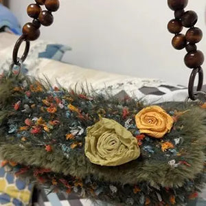 Obsessed with this texture! 🌿 The fuzzy yarn is so soft and the wooden beads add such a perfect vintage touch. It was a fun weekend project and I’ve already gotten so many compliments on the forest-chic vibes. Truly one of a kind! ✨👜