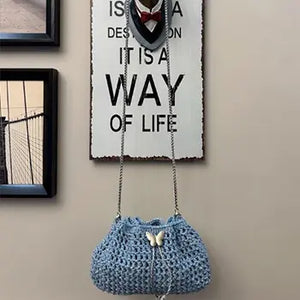 Sophia R ✨I’m a total beginner, but the DIY kit made it so easy to follow. The metallic blue yarn is even prettier in person—it has the perfect shimmer! 💎 I added the butterfly charm for a little extra Y2K vibe. Definitely my new favorite weekend bag. Highly recommend if you want a unique, handmade look! 🦋🧶